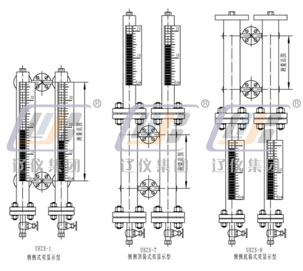 UHZS系列雙顯示型磁浮子液位計是液位計利用連通器原理,用兩套各自獨立的測量管組合而成。可以同時清楚地顯示出兩種介質的界位和上部其中小密度介質的液位。適用于容器中有兩種液體介質,且需同時測量兩種介質的界位和其中小密度介質的液位的場合。如液化氣-水、油-水等。如在該儀表上配套安裝液位報警開關和遠傳變送器可實現遠距離控制、自動檢測和記錄。
